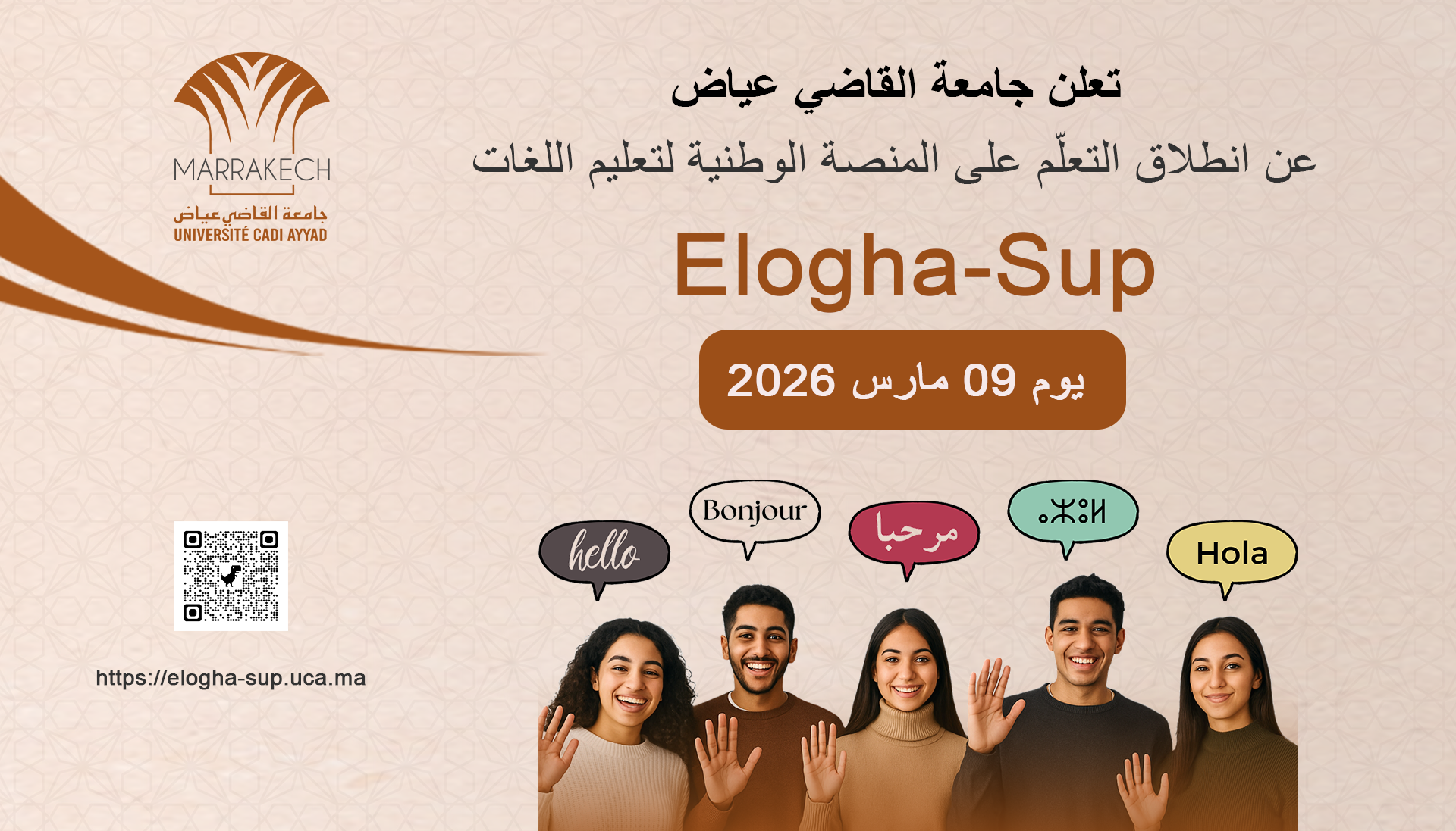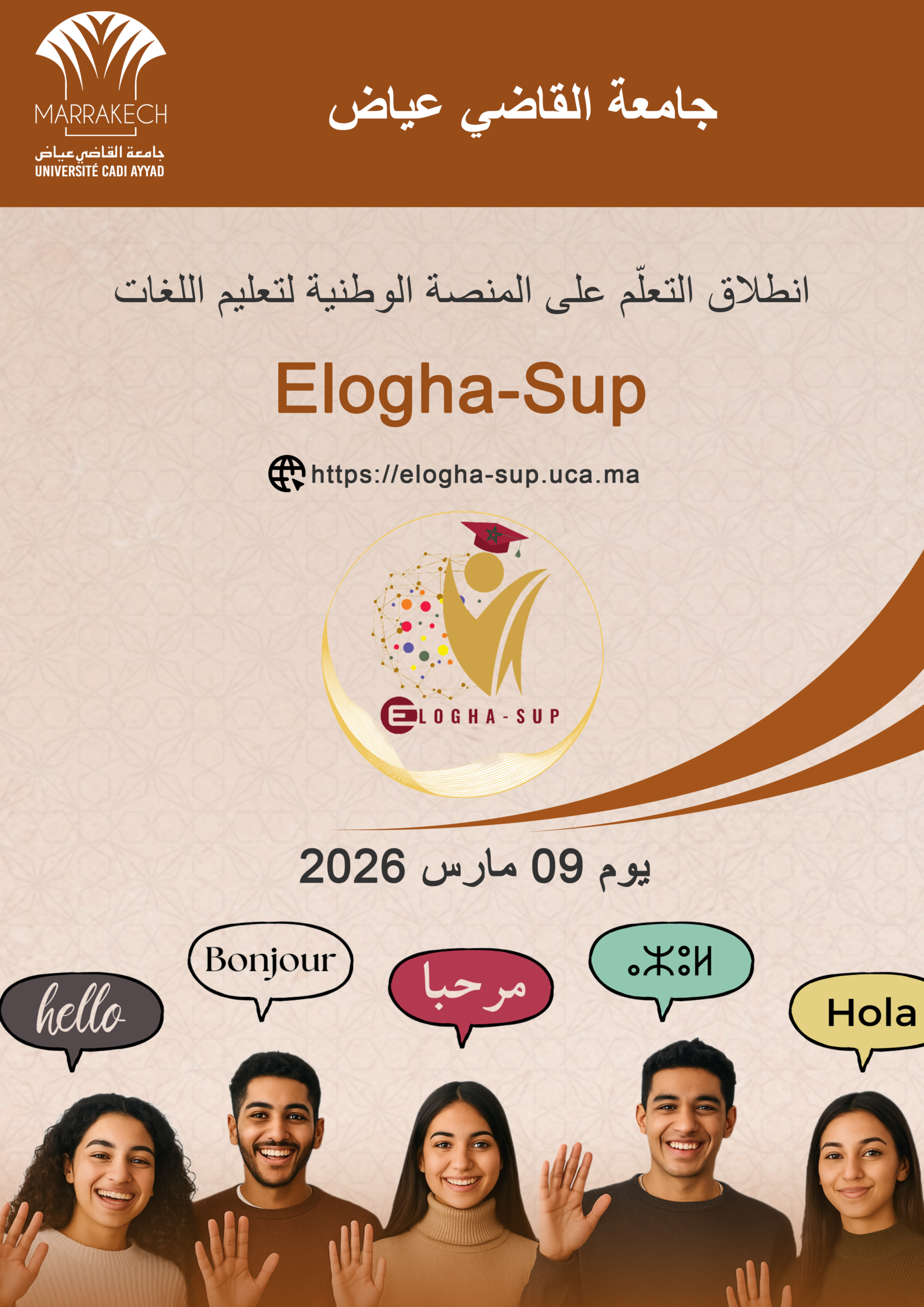 L’Université Cadi Ayyad annonce le déploiement opérationnel de la plateforme nationale d’apprentissage des langues Elogha-Sup, à compter du 09 mars 2026.